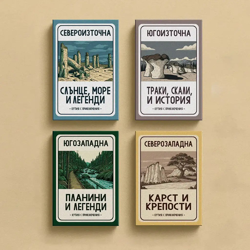 Пълният комплект включва 4-те кутии (области) с дестинации, голяма карта (60 x 42 cm), стикери за отбелязване на посетените места.